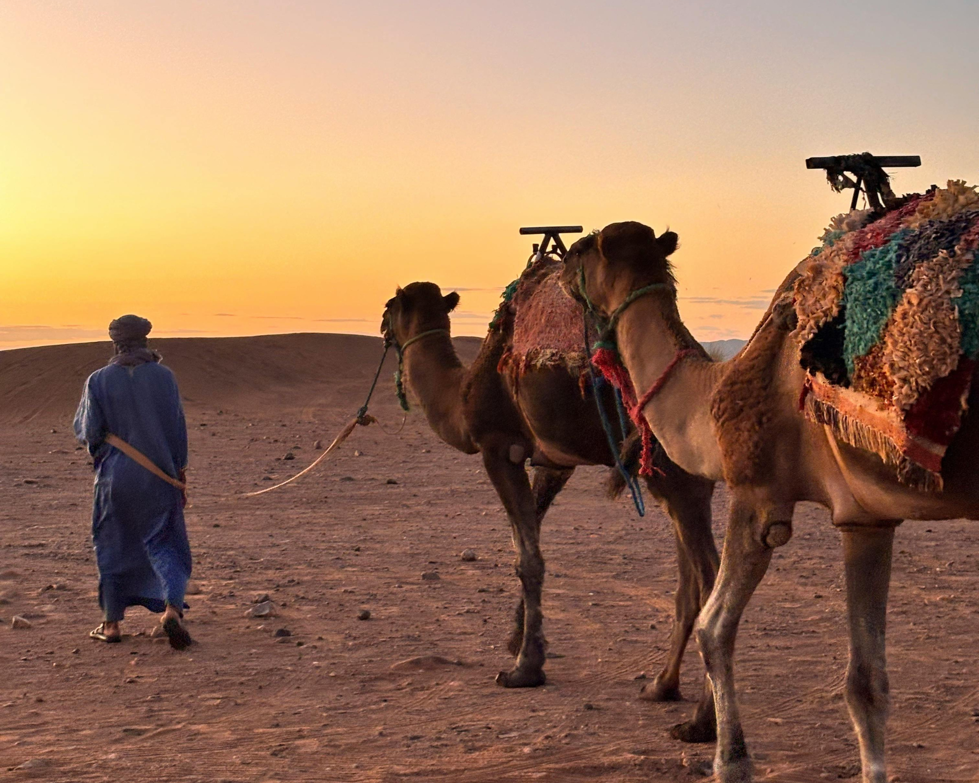 Upon arrival, embark on a peaceful camel trek as golden light bathes the desert—perfect for breathtaking photos.