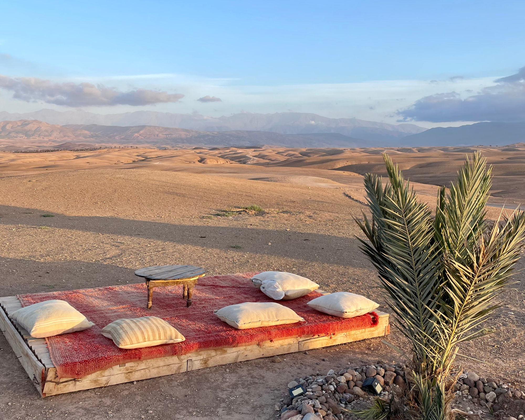 Your adventure begins with comfortable transfer from your hotel or riad to the Agafay Desert near Marrakech.