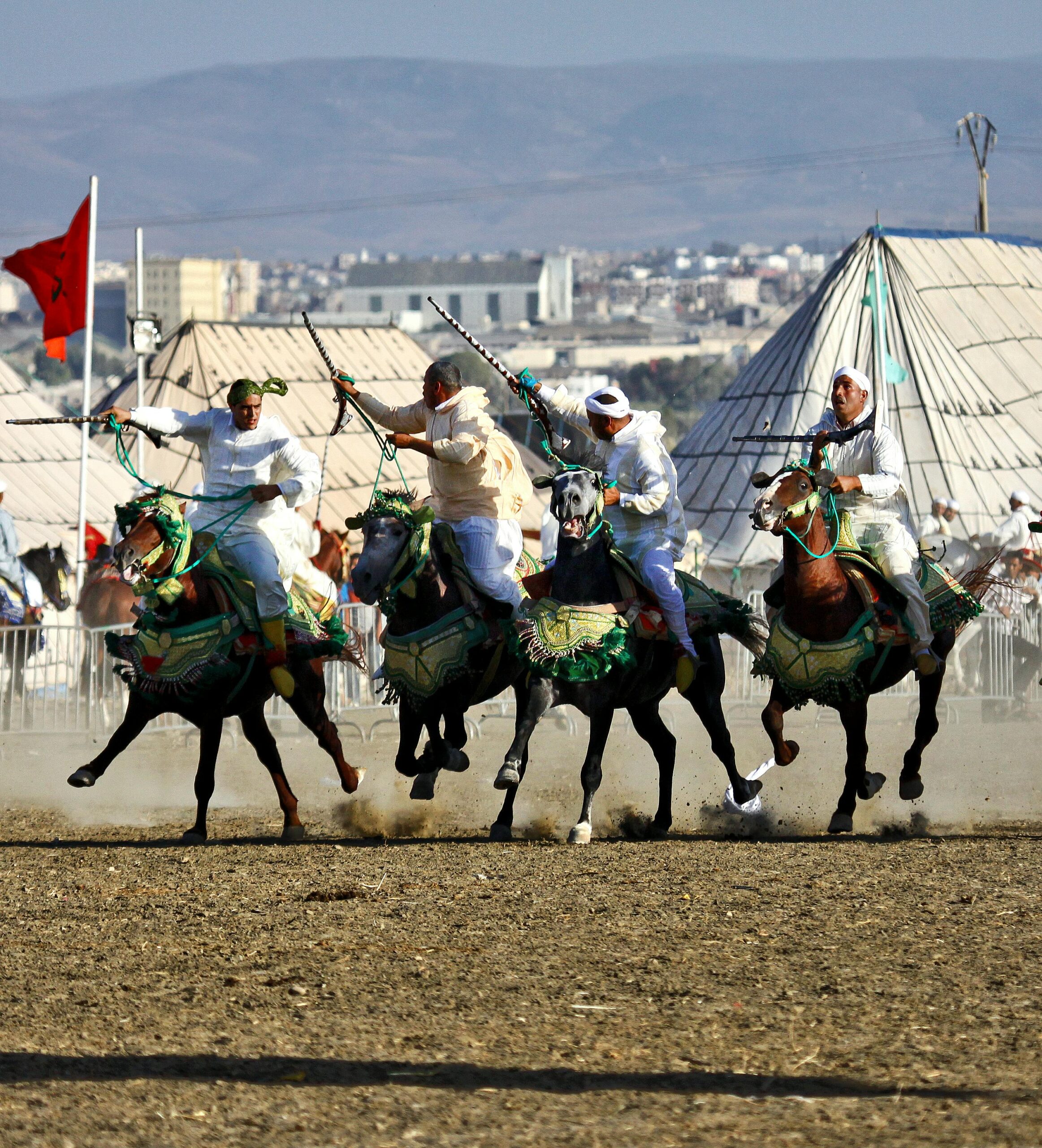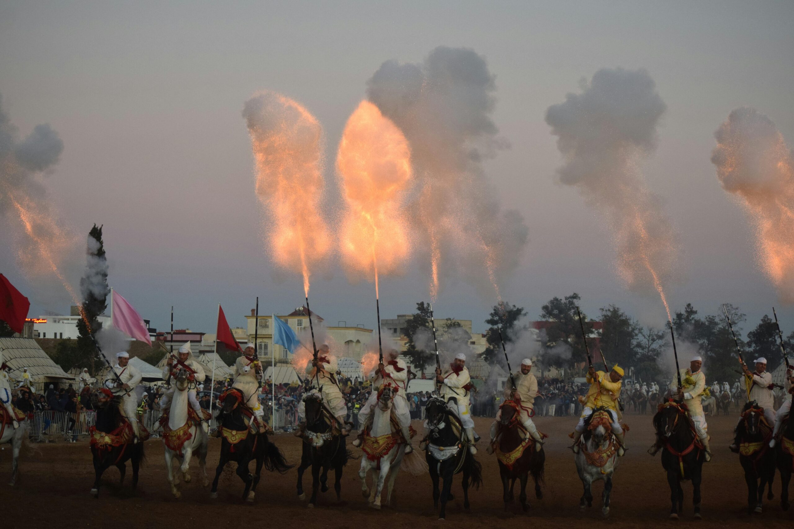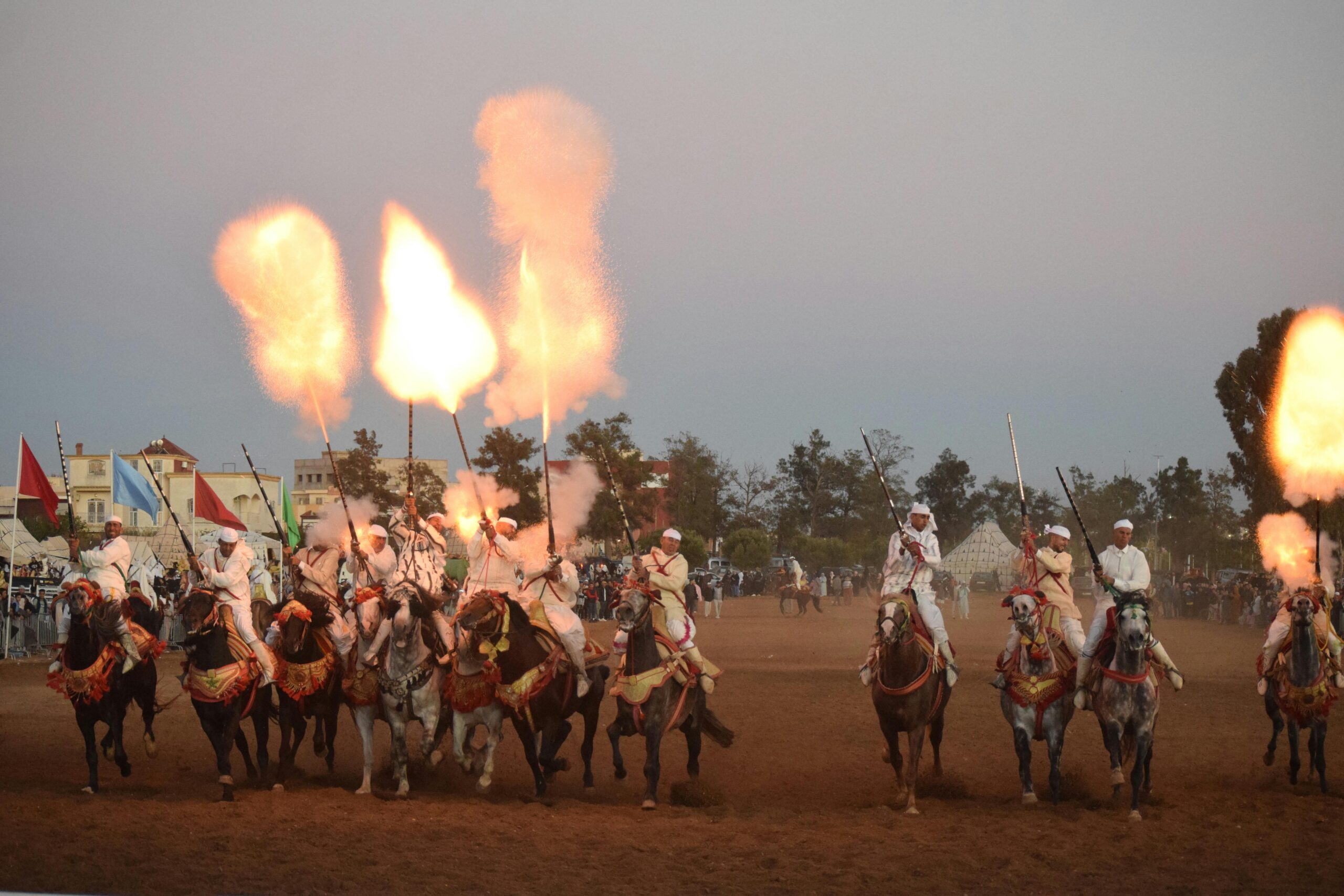 Indulge in a generous Moroccan dinner — from Harira and tagine to couscous and seasonal fruits — while regional dance troupes and musicians entertain you table-side.